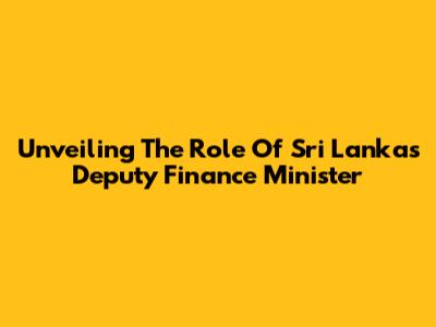 Unveiling The Role Of Sri Lanka's Deputy Finance Minister