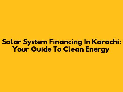 Solar System Financing In Karachi: Your Guide To Clean Energy
