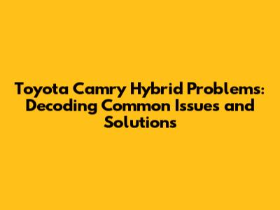 Understanding Common Toyota Camry Hybrid Issues