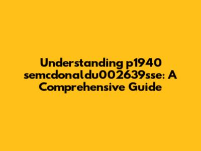 Alright, let's zoom in on the "p1940" part of p1940 semcdonaldu002639sse. This initial segment is likely more than just a random collection of letters and numbers; it probably carries specific meaning. It could represent a code, a version number, or a category. Understanding this could give us clues about the broader context of the entire identifier. It might hint at the kind of item, system, or process to which the string is connected. Think about how product codes work. Companies often use prefixes or specific codes to indicate the product type, the year of manufacture, or even the region where the product was sold. For example, "p1940" could stand for a specific manufacturing year or a product line within a larger system. To truly understand its relevance, consider the wider landscape in which this code operates. Is it part of a complex system of identifiers? Does it have links to other codes or data points? Context is vital. Consider the industry or application area. If it’s related to automotive, then the "p1940" part might point to a specific engine component or a diagnostic trouble code. If it’s related to software, this might refer to a specific software update or version. Looking for patterns and correlations with other codes could provide useful insights. Searching for data sets that contain "p1940" in conjunction with other terms may give us clues about its nature and applications. For example, if we come across mentions of "p1940" along with terms like "engine control module" or "software update," we can reasonably infer its connection to vehicles or software. Examining related documentation such as user manuals, technical specifications, and manufacturer resources, may also assist. Finally, we need to gather as much context as possible. Knowing the industry, application, and any related information may help us define the role of the "p1940" segment within the whole identifier, and improve our understanding of the whole sequence of characters.