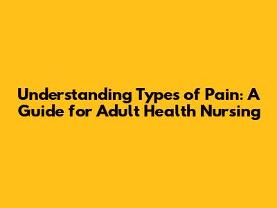 Understanding these different types of pain is essential for every adult health nurse. By knowing the characteristics, causes, and management strategies for each type, we can provide more effective and compassionate care to our patients. Keep learning, keep asking questions, and never stop advocating for your patients' pain relief!