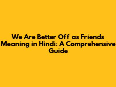 Hey everyone! Ever stumbled upon the phrase "we're better off as friends" and wondered what it truly means, especially in the context of Hindi? Well, you're in the right place! This guide breaks down the meaning, nuances, and cultural implications of this often-used phrase, offering a clear understanding in Hindi. Let's dive in and explore what it really signifies when someone says, “चलो, हम दोस्त ही अच्छे हैं” (chalo, hum dost hi achche hain).