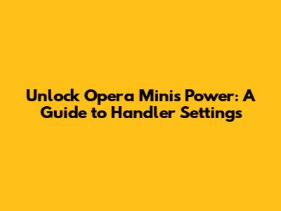 Hey guys! Ever wondered how to truly unlock the potential of your Opera Mini browser? Let's dive into the world of Opera Mini Handler settings, those secret tweaks that can seriously amp up your browsing experience. This guide is your key to understanding and configuring these settings, making your mobile internet journey smoother and more efficient. We'll explore everything from basic setup to advanced configurations, ensuring you get the most out of this awesome browser. Ready to level up your Opera Mini game? Let's get started!