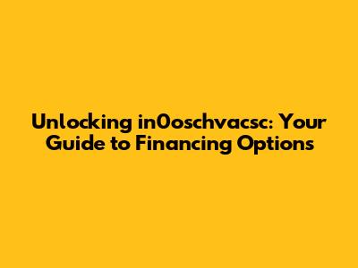 Hey guys! Ever heard of in0oschvacsc and felt like you were trying to decipher an alien language? Well, you're not alone! And if you're thinking about financing something related to it, the confusion can double. But don't sweat it! This guide is here to break down the mystery of in0oschvacsc and explore your financing options in a way that's easy to understand.
