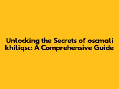 What Exactly Is Oscmali Khiliqsc?