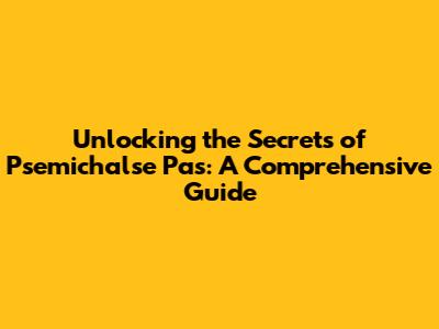 Mastering Psemichalse Pas: Tips and Tricks