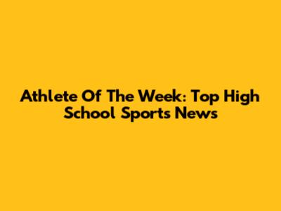 Athlete Of The Week: Top High School Sports News