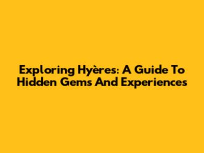 Exploring Hyères: A Guide To Hidden Gems And Experiences