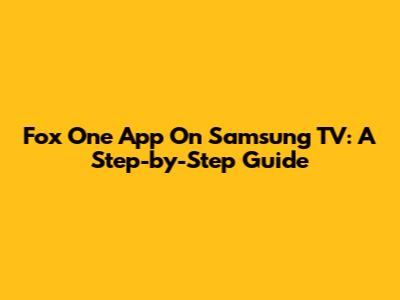 Fox One App On Samsung TV: A Step-by-Step Guide