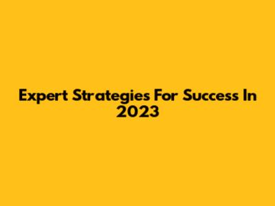 Expert Strategies For Success In 2023