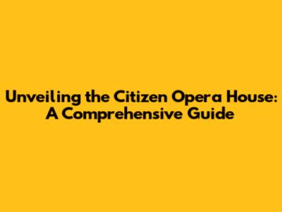 Hey everyone, let's dive into the fascinating world of the Citizen Opera House! I'm going to share some cool insights, from its history to its current happenings, and how it continues to inspire. The Citizen Opera House is not just a building; it's a living, breathing testament to art, culture, and community. So, grab a seat, and let's explore everything you need to know about this amazing landmark.