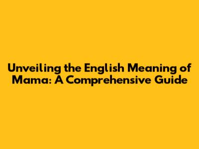 Unveiling The English Meaning Of 'Mama': A Comprehensive Guide