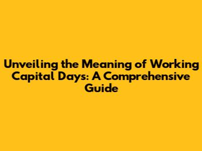 Hey guys! Ever heard the term "Working Capital Days" thrown around in the business world and wondered, "What in the world does that even mean?" Well, you're in the right place! In this guide, we're going to break down everything you need to know about working capital days, from the basics to how it impacts a company's financial health. Buckle up, because we're about to dive deep into this fascinating topic!