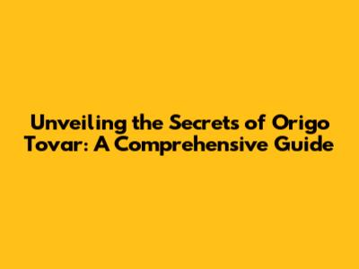 Understanding Origo Tovar: The Basics
