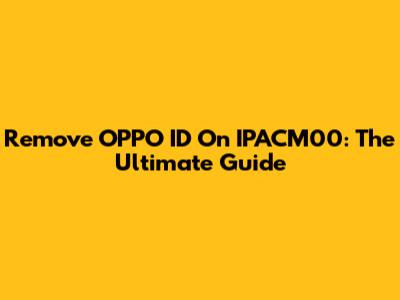 Remove OPPO ID On IPACM00: The Ultimate Guide