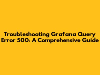 Troubleshooting Grafana Query Error 500: A Comprehensive Guide