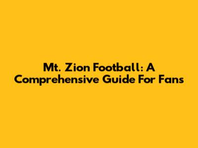 Mt. Zion Football: A Comprehensive Guide For Fans