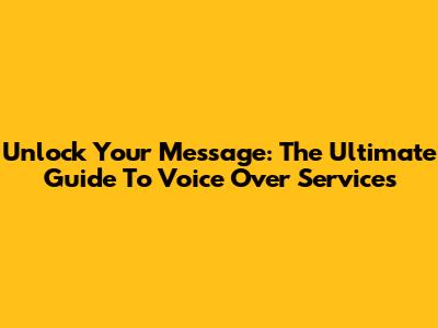 Unlock Your Message: The Ultimate Guide To Voice Over Services