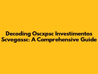 Decoding Oscxpsc Investimentos Scvegassc: A Comprehensive Guide